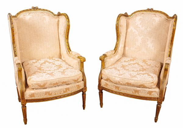 A PAIR OF LOUIS XVI STYLE GILTWOOD ARMCHAIRS