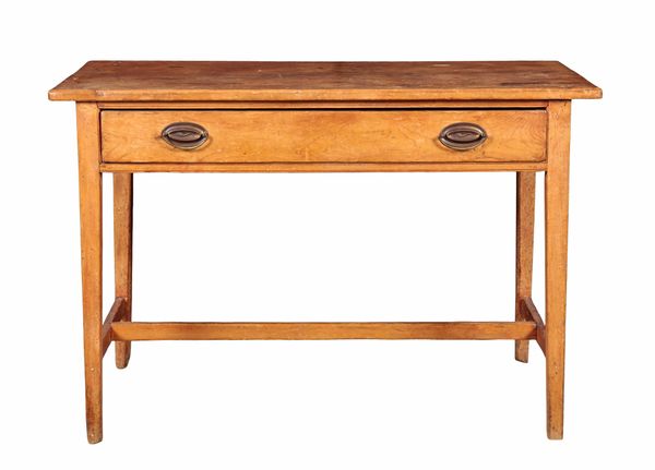 19th century, with a single frieze drawer on tapered square legs joined by stretchers, 71cm high x 105cm wide x 54cm deep