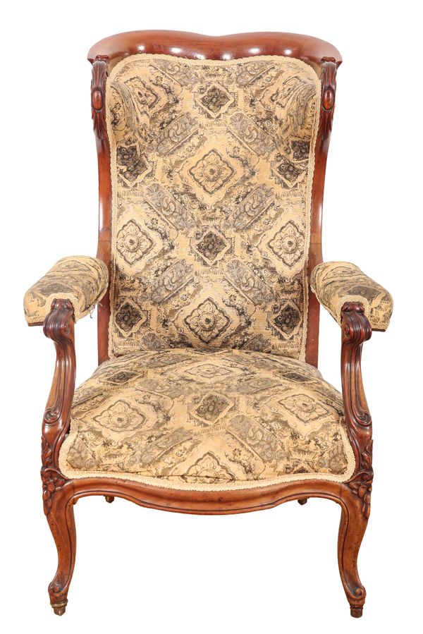 A VICTORIAN WALNUT WINGBACK ARMCHAIR