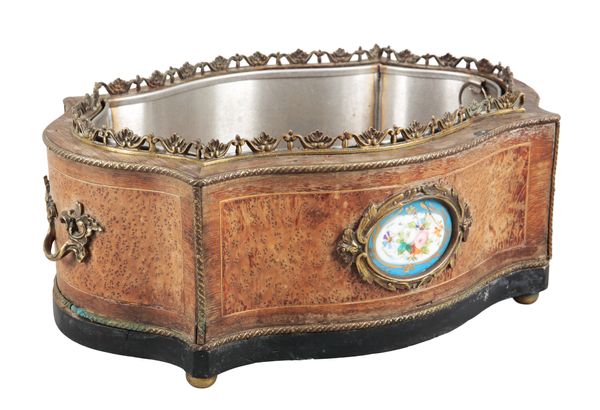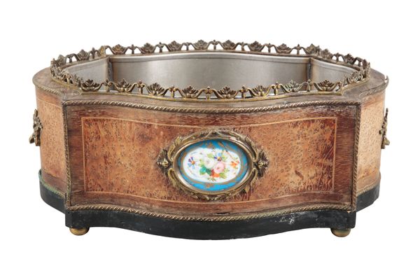 A LOUIS XV STYLE AMBOYNA AND GILT METAL MOUNTED JARDINIERE