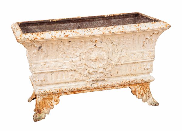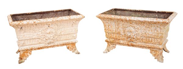 A PAIR OF WHITE PAINTED CAST IRON PLANTERS
