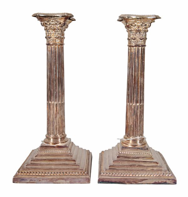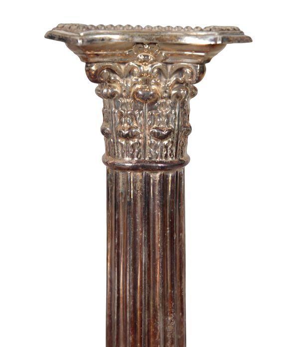 A PAIR OF VICTORIAN SILVER CORINTHIAN CANDLESTICKS