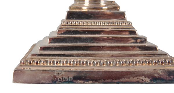 by Deakin & Deakin, Sheffield 1890, on stepped beaded bases with acanthus leaf decoration to the sconces, 26cm high, 64 tr. ozs combined (loaded) (2)