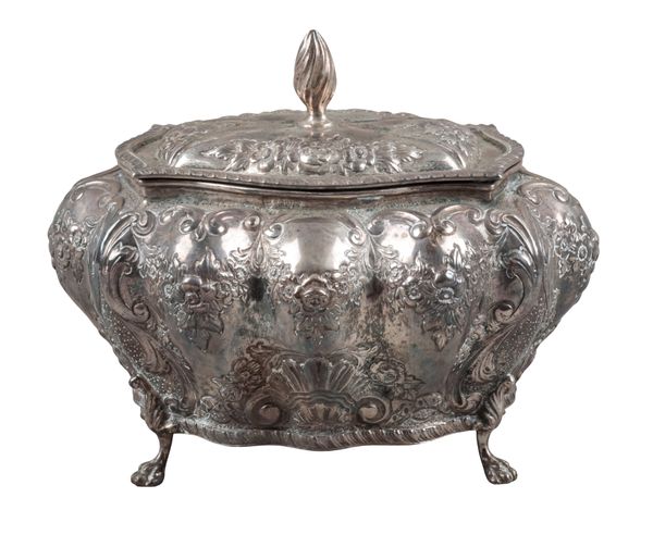 by Nathan & Hayes, Chester 1907, with lobed and embossed oval body, on paw feet, 18cm high x 20cm wide x 14cm deep, 22 tr. ozs