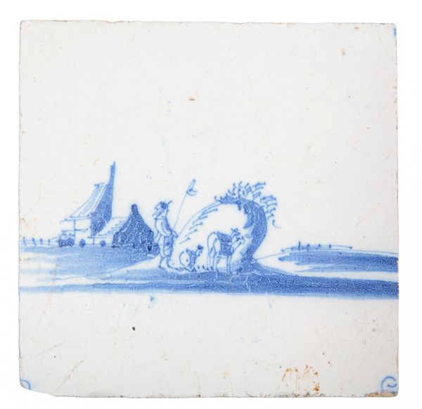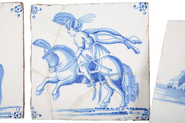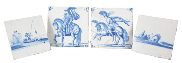 18th century, including two decorated with figures on horseback, 13cm wide, and two with pastoral scenes, 11cm wide (4)