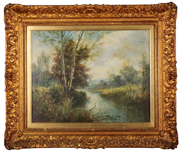 ERNEST PARTON (1845-1933) A wooded riverside landscape