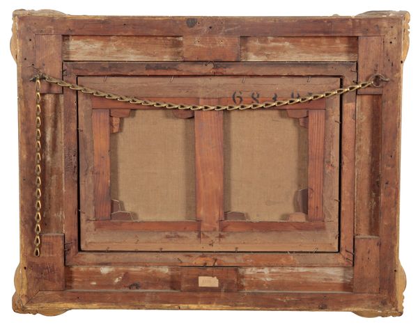 depicting beached fishing boats and figures, signed lower left, oil on canvas, 31cm x 46cm Provenance: bears Christie's stencil verso.