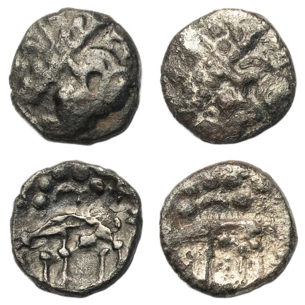 Plated staters, Norfolk wolf left type, wreath, cloak and crescents, rev. wolf left, (SCBC 31, ABC 1396). Good fine Provenance: from the Kent collection of Ancient coins