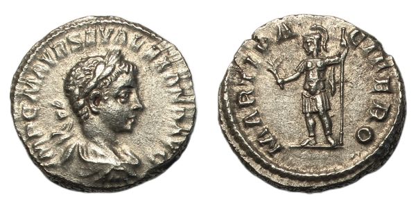 Denarius, Rome, laureate and draped bust right, rev. Mars standing holding branch and inverted spear, 3.44g, (RSC 173, RIC 160). Nearly extremely fine Provenance: from the Kent collection of Ancient coins