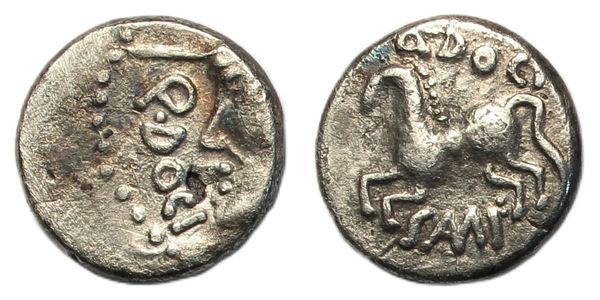 Denier, head left, legend in front, beaded circle, Q. DOCI, rev. horse left, legend above and below, Q DOCI /SAM F, 1.42g, (DT. 3245, LT. 5405, GCV. 95). Obverse off centre but legend clearly visible, reverse better, overall good very fine. Provenance: from the Kent collection of Ancient coins