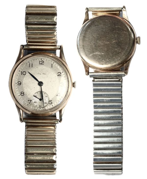 1950's wrist watch, 9ct gold with expandable wrist strap. Not currently working, made by Record who were bought out by Longines in 1961, face diameter, 30mm
