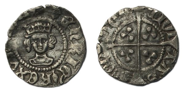 Halfpenny, pinecone-mascle issue, London, crowned facing bust, rev. long cross pattee, 0.51g, (SCBC 1884, N.1468). Excellent portrait, good very fine