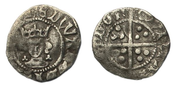 Halfpenny, light coinage, London, crowned facing bust, trefoils by neck, rev. long cross pattee, CIVITAS LONDON, 0.33g, (SCBC 2068). Clear portrait, about very fine