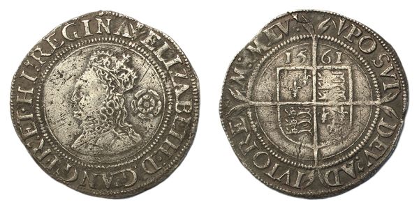 Sixpence, 1561, third issue, crowned bust 1F left, rose behind, rev. long cross fourchée over shield, date above, mm. pheon, 2.98g, (SCBC 2561, N.1997). Good fine with some surface marks, particularly on the obverse, legends better