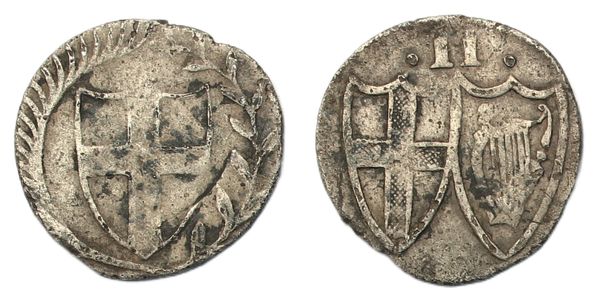 Halfgroat, English shield within wreath, rev. English and Irish shields, mark of value above, 0.93g, (SCBC 3221, N.2728). About very fine