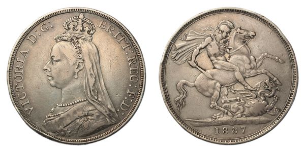Crown, 1887, jubilee bust left, rev. St. George slaying dragon, date below, (SCBC 3921, ESC. 296, Bull 2585). Edge bruise, good fine