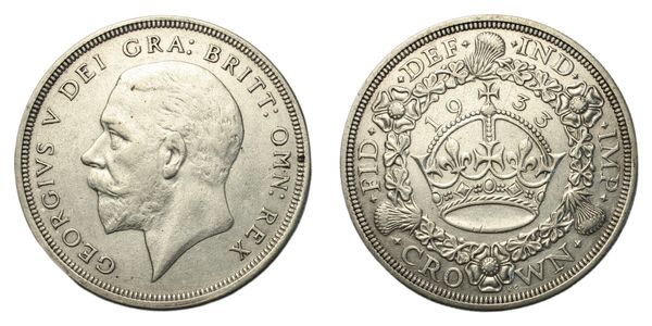 Crown, 1933, fourth coinage, modified bare head left, rev. crown and date within wreath, (SCBC 4036, ESC 369, Bull 3636). About very fine, reverse better