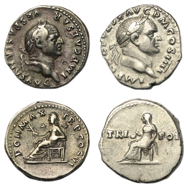 Denarii, laureate head right, rev. Securitas seated left, feet on stool, arm on chair, (RSC 36, RIC 91); Rome, laureate head right, rev. Vesta seated left, holding simpulum, (RSC 563, RIC II.1 359). Very fine, the first toned Provenance: from the Kent collection of Ancient coins
