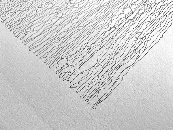 ‘Tube Lines’ is his series of one-off original pen drawings that look like siesmic wave outputs we see when an earthquake occurs. It’s facinating to see that each tube line has its own energy fingerprint that makes it distinct from the others.